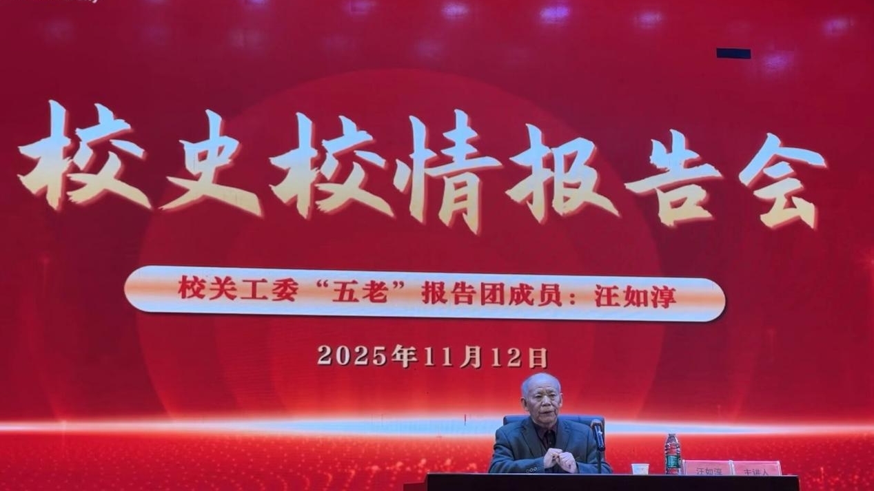 立冬已至,秋意沉淀,文脉绵延。11月12日,万象城allwincity官网联合教育科学学院、体育学院在大学生活动中心共同举办校史校情教育报告会。校关工委“五老”报告团成员汪如淳老先生受邀担任主讲人,三所学院的师生代表齐聚一堂,在娓娓道来的校史故事中聆听岁月回响,于薪火相传的精神血脉中汲取奋进力量。