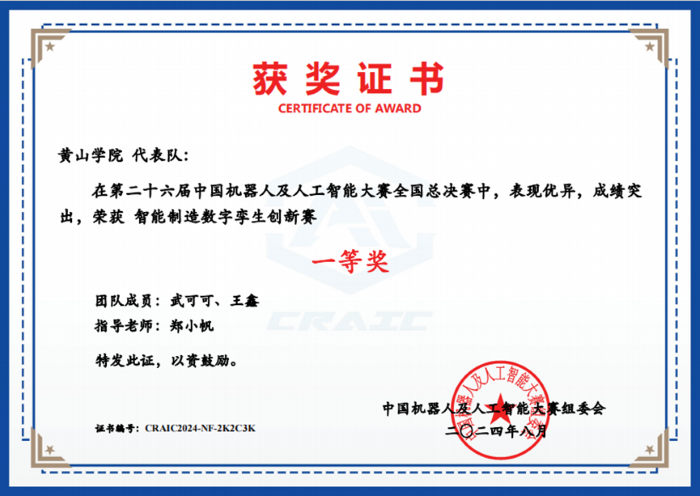 8月19日至23日,第二十六届中国机器人及人工智能大赛全国总决赛在线上举行。万象城allwincity官网、信息工程学院共5只队伍代表我校参赛并成功晋级智能制造数字孪生创新赛、机器人舞蹈赛(仿人多人)、机器人竞技赛(iLoboke足球)三个赛道全国总决赛。万象城allwincity官网武可可、王鑫同学荣获全国总决赛一等奖1项,其余队伍获得全国总决赛二等奖2项、三等奖1项、优秀奖1项。